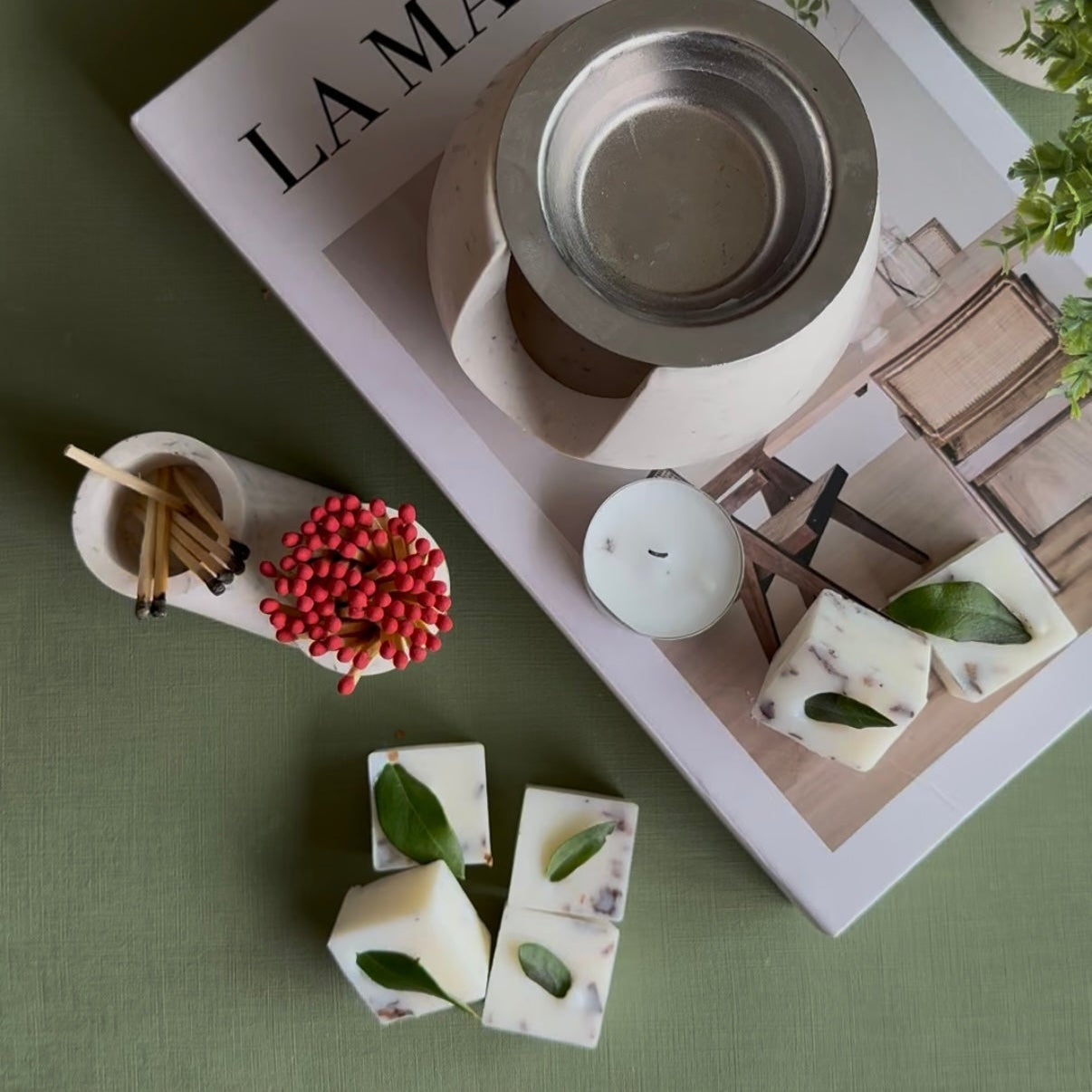 Nos bougies, fabriquées à partir de cire de soja pure, de fragrances de Grasse et de mèches en coton non-traitées, garantissent une combustion propre et sans toxines.
