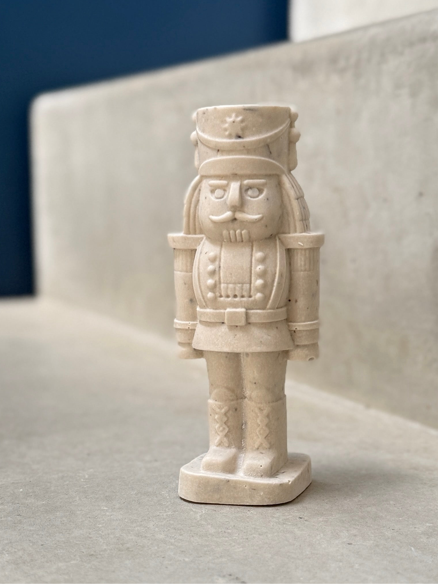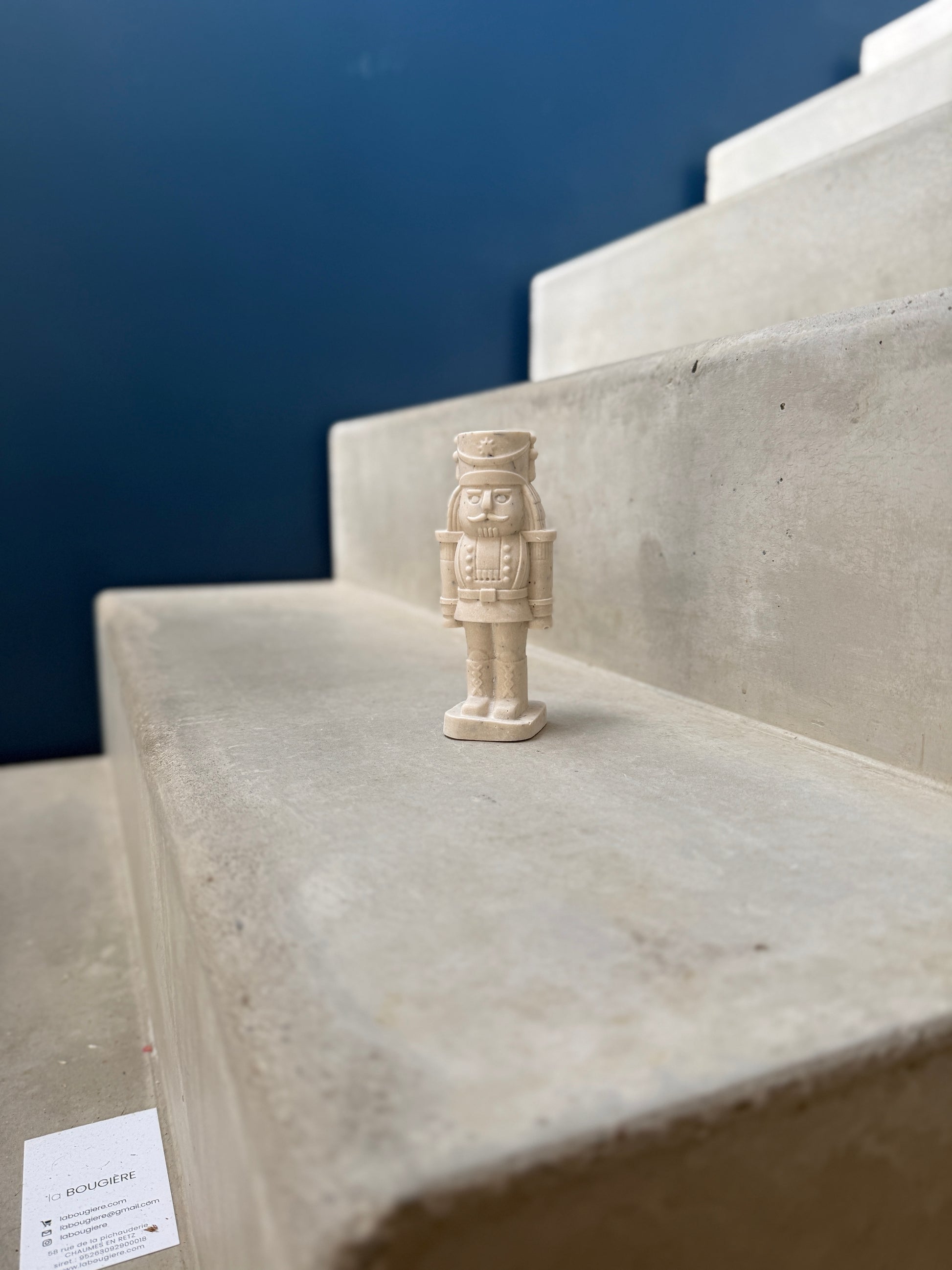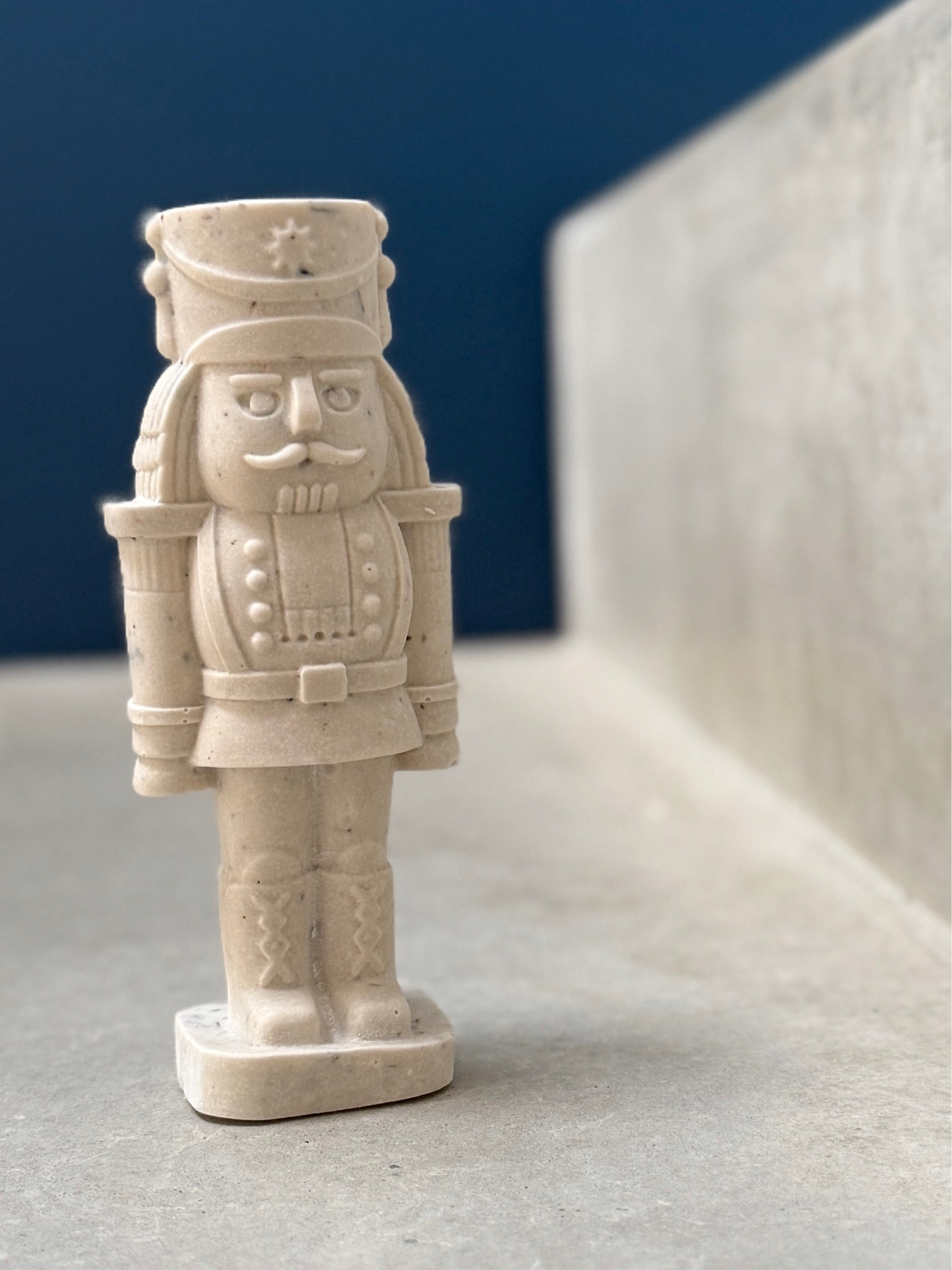 Symbole incontournable des fêtes de fin d’année, ce casse-noisette décoratif a été revisité dans un style minimaliste et naturel. Fabriqué en minéral et coquillages revalorisés, il conjugue élégance et démarche écoresponsable.