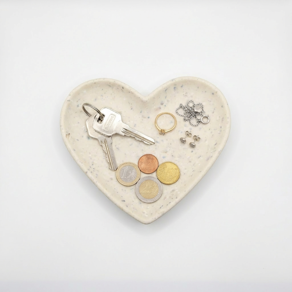 Cœur Précieux est un vide-poche artisanal en forme de cœur, pensé pour accueillir les petits essentiels du quotidien — clés, bijoux, pièces ou souvenirs.