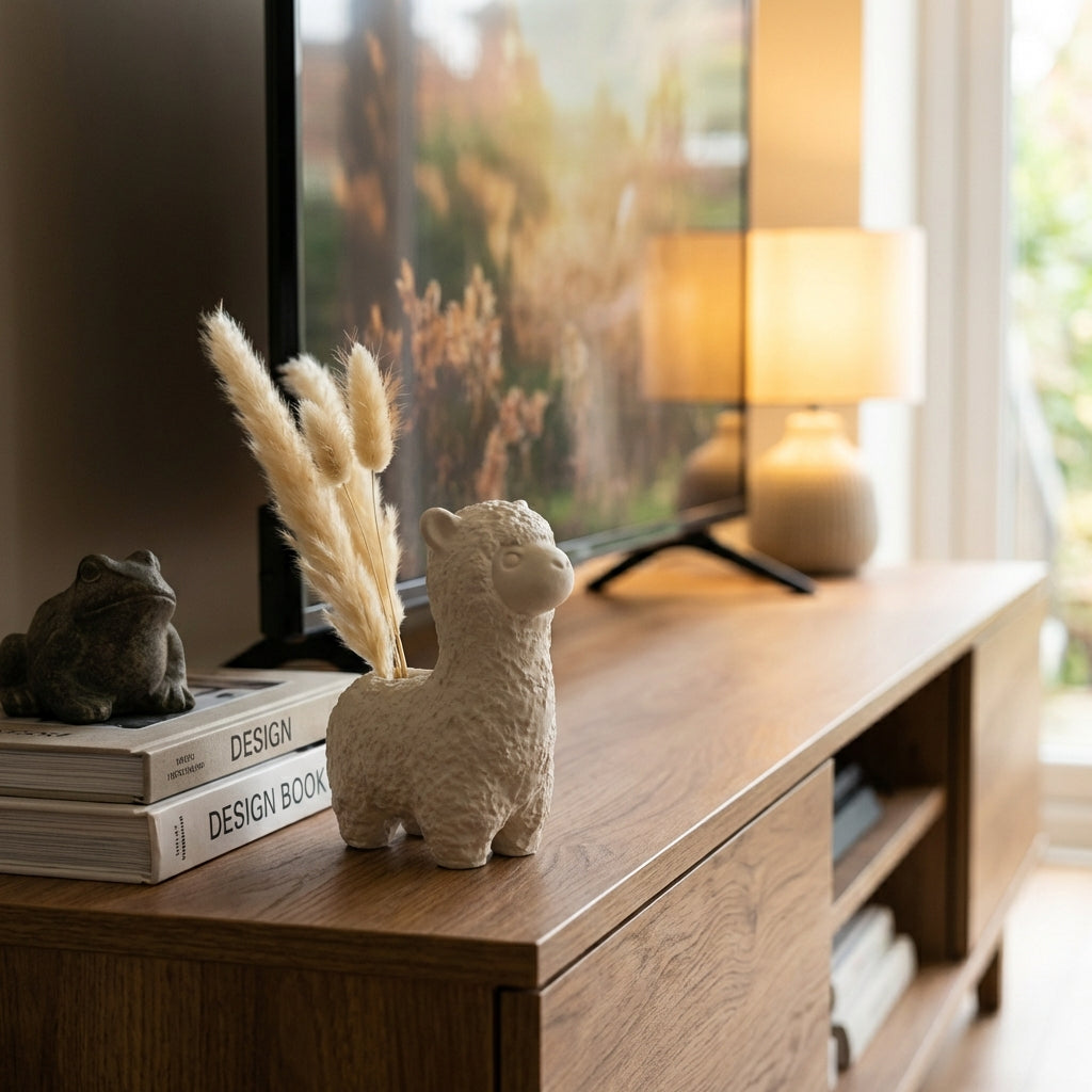 Doux, apaisant et légèrement espiègle. L’Alpaga La Bougière est une figure décorative qui évoque la tranquillité, la lenteur et le réconfort.