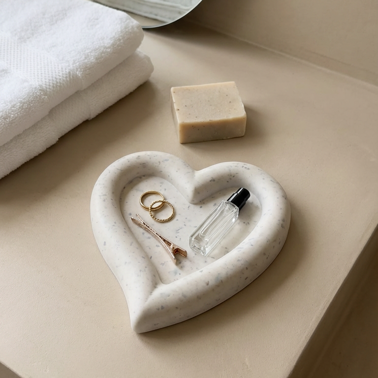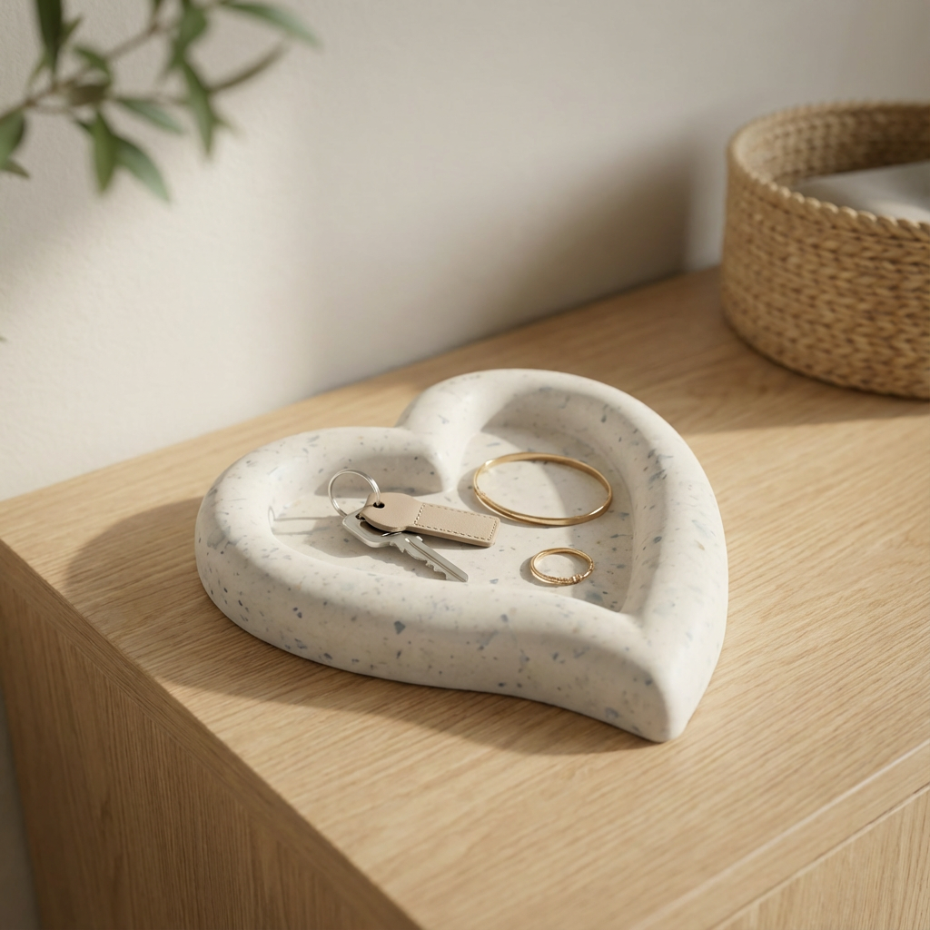 Le Cœur est un vide-poche en forme de cœur, imaginé pour accueillir les objets que l’on garde près de soi. Bijoux, clés, petits trésors du quotidien… un endroit dédié, doux et rassurant.
