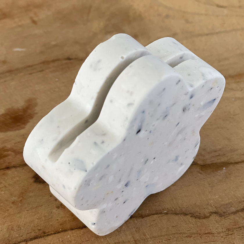 L’essence de la mer capturée – Ce matériau original est composé de fragments de coquillages recyclés intégrés dans une base minérale. Créé artisanalement, le terrazzo coquiller offre des textures naturelles et des motifs uniques, rendant chaque pièce singulière. Il combine esthétique brute et engagement durable, transformant les déchets marins en véritables pièces durables.