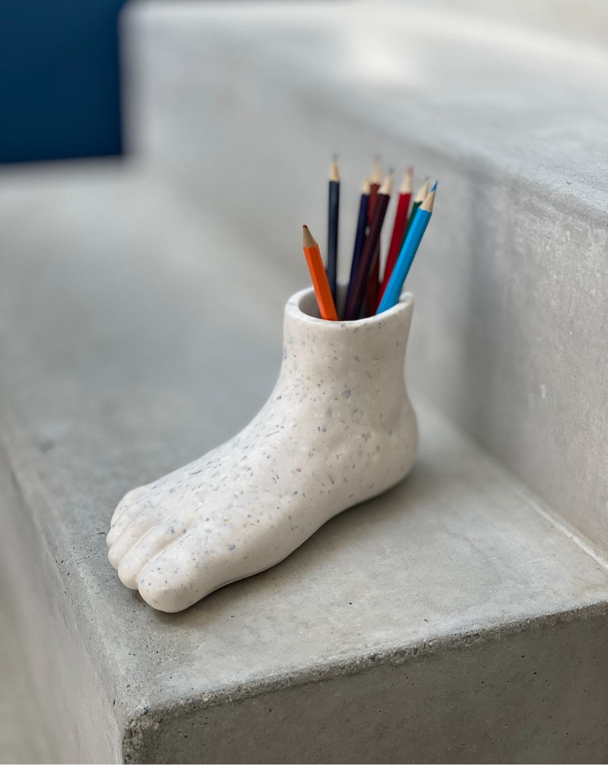 Voici donc le pot “Pied”, une création artisanale signée La Bougière : moulé à la main en minéral et coquillages revalorisés, il allie humour, texture et durabilité.