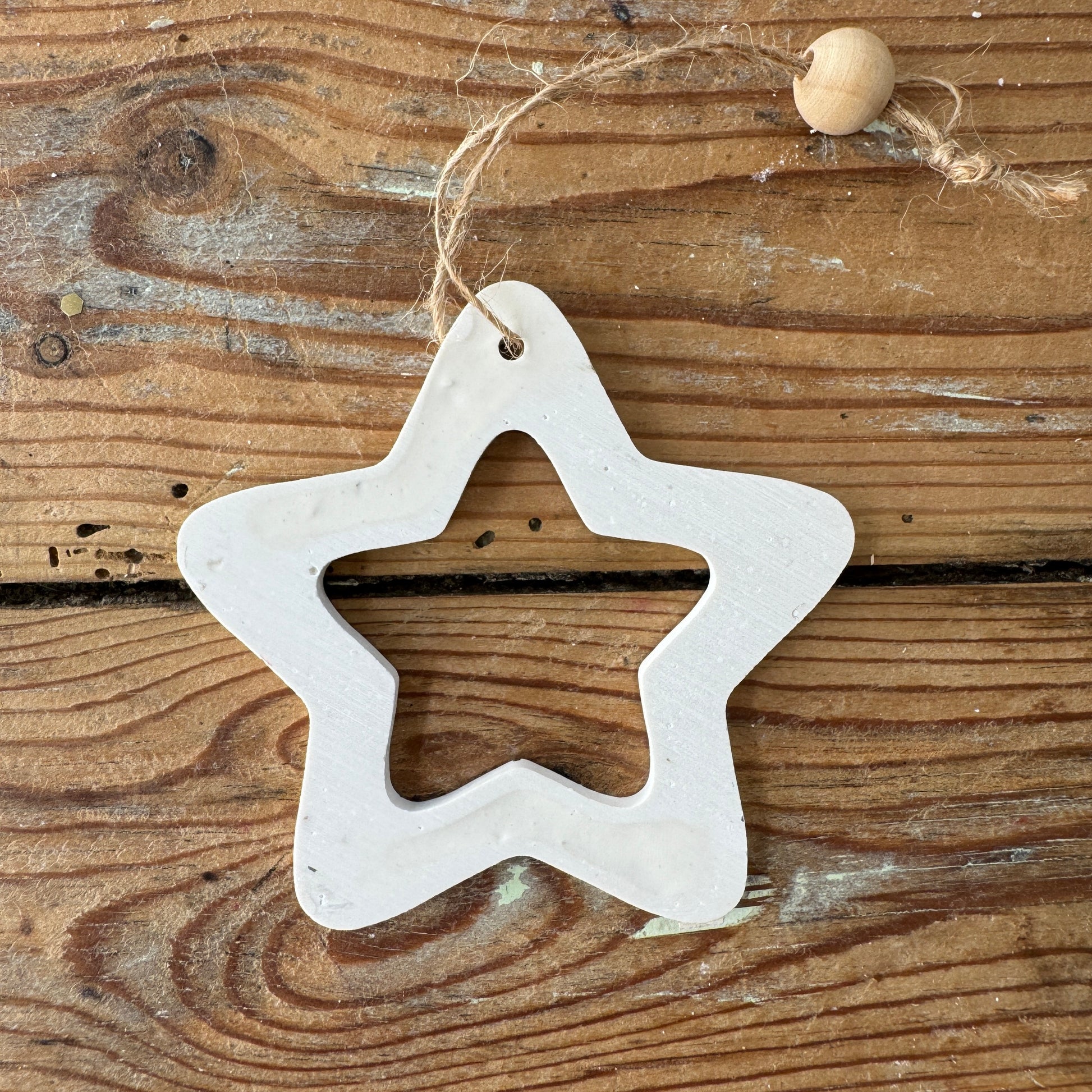 de petites décorations façonnées à la main dans notre atelier de Loire-Atlantique, en minéral et coquillages revalorisés 🐚
